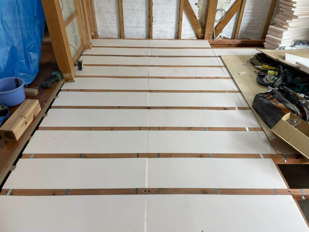 住まいの断熱性能を高めるため、床や壁の内部に断熱材を施工しました。